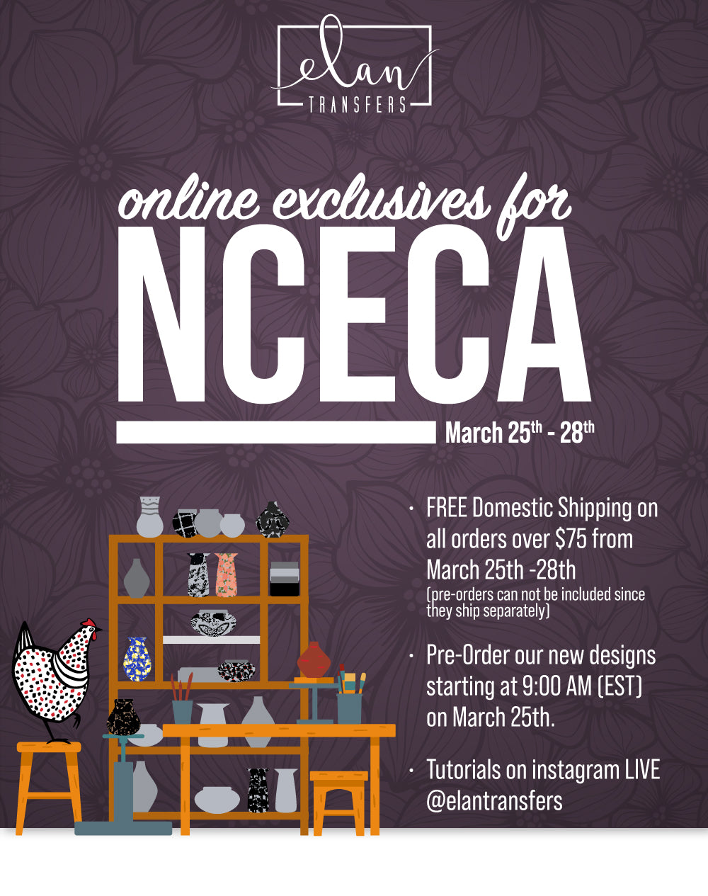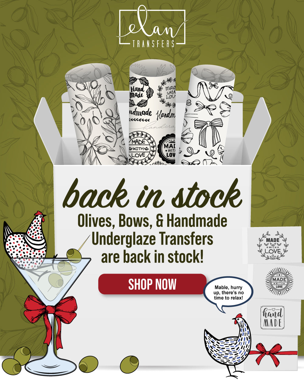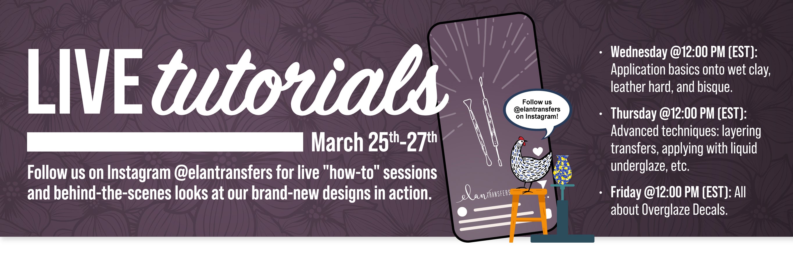 Elan Transfers offers a vibrant collection of high-quality, artist-designed underglaze decals created specifically for today’s ceramic artists. After years of using custom decal designs on her own work, artist Leigh Anne Thompson, saw that there was a need for a fresh approach to a timeless art of underglaze transfers.